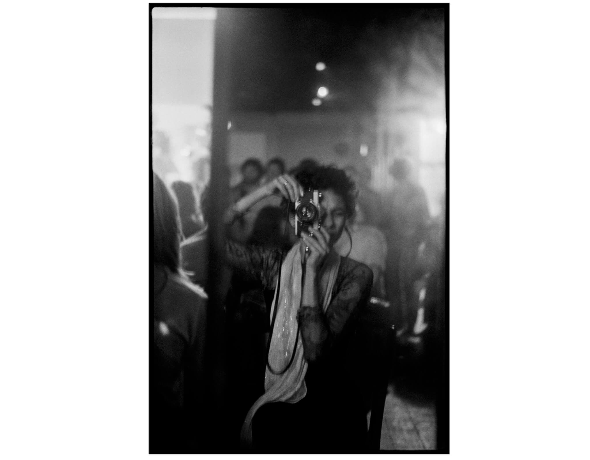 I did not forget about Self Portrait as I moved deeper into the exhibition space. A “mirror selfie” before such a phrase ever came to pass, Self Portrait features the artist still attached to her instrument. Smith holds the camera ever so gently between her fingertips. Positioned for a vertical frame, she squints, looking into the lens that will capture her. The camera covers half of her face; the machinations of self portraiture laid bare. A portrait of her process. A reflexive exercise to behold. What comes into focus in the blur of the photograph is only the intimate relationship between the photographer and her camera. Smith’s body contorts to accommodate and support the device. If a photograph is a “living thing,” as Smith put it in her 2026 conversation with Desrosiers at the PMA, Self Portrait is a work of symbiosis. A portal into the exhibition, Self Portrait showcases Smith’s ability to orchestrate a dynamic, mutualistic arrangement between the camera and the subject, even and especially when the subject is herself.
