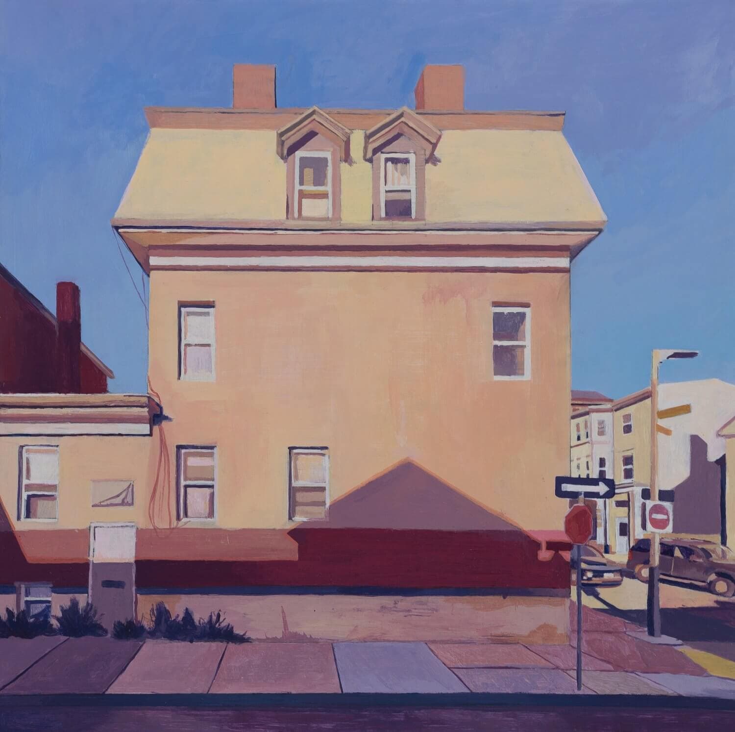 In his new paintings, Tim McCool measures time in light and shadows that dance across the facades of his painted Boston homes, evoking a sense of fleeting magic from otherwise unmemorable buildings.